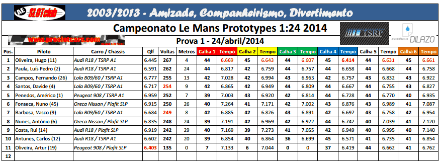 O Campeonato de Clássicos do AESlot baseado nas carroçarias da Tamiya dos anos 60 teve muito pouco de original pois foi essencialmente uma réplica do Campeonato escolhido pelo SMR aquando da inauguração da sua pista "concept" sendo que a diferença de vulto se centrava nos motores usados no AESlot que foram os NSR EVO de 21.4k rpm. O AESlot pode e deve continuar a ser pioneiro e inovar nas propostas que realiza para escala 1/24 ...